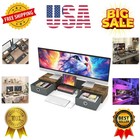 Dual Monitor Stand Riser with Drawers Rustic Wood Large Storage for Desktops ...