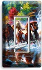 WILD RUNNING HORSES FOREST WATERFALL RIVER DOUBLE LIGHT SWITCH WALL PLATE COVER