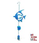 Blue Fish Sea Glass Hanging Wind Chime 19.69 Inch, Nautical Glass Windchime