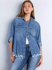 Frayed Hem Roll-Up Sleeve Denim Shirt