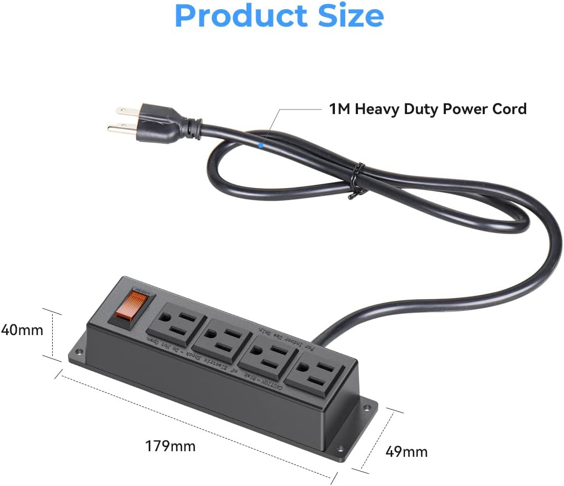 Wall Mount Power Outlet Strip, 4 Outlet Mountable Power Strip with Switch, under