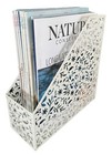 Punched Metal Magazine File/Holder - White Floral Design 10.25” X 9.75”x 3.75”