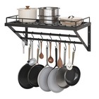 Greenco Wall Mounted Pot And Pan Organizer Shelf With 10 Hooks