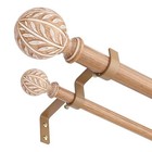 1 Inch Simulated Wood Double Curtain Rod with Modern Design Floral Carved Bal...
