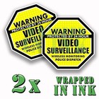 Warning 24 hour Video Surveillance Security Stickers YELLOW OCT. Decal 2 PACK