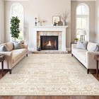 8x10 Washable Area Rugs for Living Room, Vintage Floral Non-Slip Low Pile Nat...