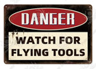 Danger Watch For Flying Tools Metal Tin Sign Garage Man Cave Wall Decor