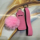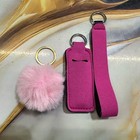 NEW keychain set lip balm holder & wristlet (5 inches) & pom pom