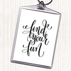 White Black Find Your Fun Quote Bag Tag Keychain Keyring