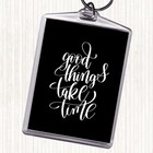 Black White Good Things Take Time Quote Bag Tag Keychain Keyring