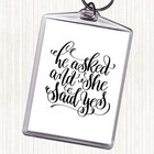 White Black He Asked She Said Yes Quote Bag Tag Keychain Keyring