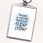 Blue White Super Power Inspirational Quote Bag Tag Keychain Keyring
