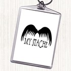 White Black Mustache Word Art Quote Bag Tag Keychain Keyring