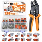 218PCS 12 Kits DT Deutsch Connector Kit with Ratcheting Wire Crimper, 2/3/4/6/8/