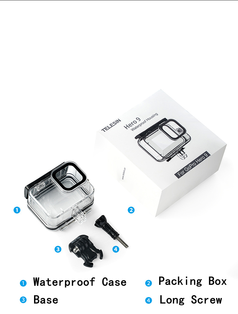 Specifications: Material: High permeability PU material Tempered glass Waterproof depth: 45m Applicable Model: for GoPro Hero 9