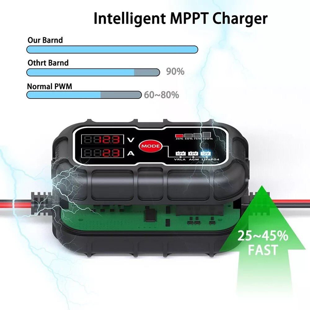 *Breite Kompatibilität: Dieser Regler wurde für 12-V-Batterien entwickelt und ist mit verschiedenen Typen kompatibel, z. B. AGM-, Gel-, Deep-Cycle-, versiegelten, gefluteten und weiteren Lithium-Batterien. Bitte beachten Sie: Es ist wichtig, keine Batterien mit höherer Spannung anzuschließen.