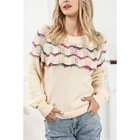Openwork Wavy Striped Round Neck Sweater