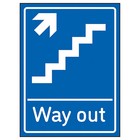 Way Out Arrow Up Stairs Right Blue Safety Sign For Visitors