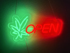 Weed Leaf OPEN Sign Neon- Marijuana Light Sign- Business Signs For Bar Pub Decor