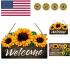 Welcome Sign for Front Door 8" x 12" Sunflower Welcome Sign Rustic Summer Fa...
