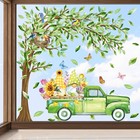 Whaline 6 Sheets Spring Tree Window Cling Stickers Watercolor Gnome Truck Gre...