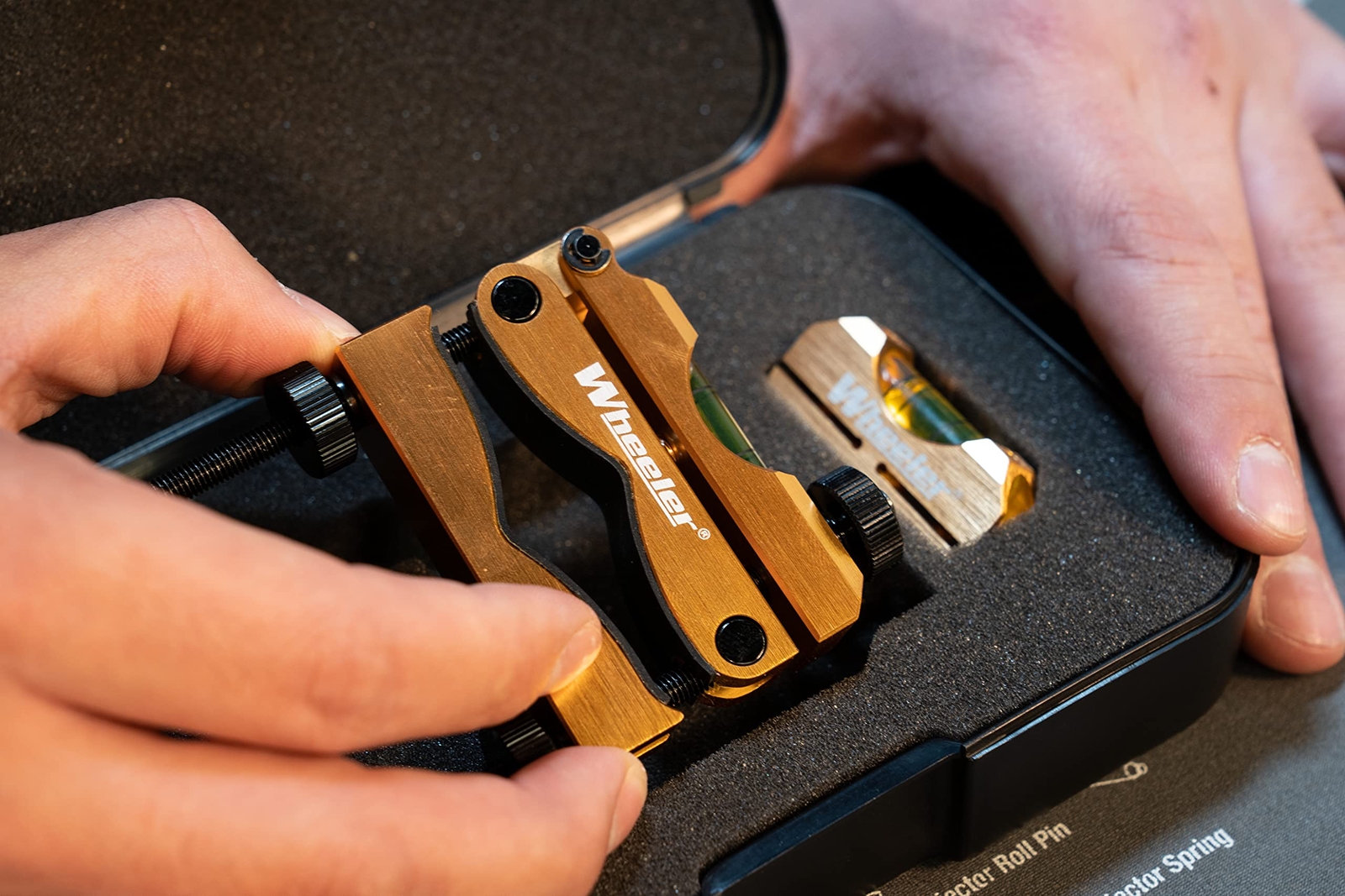 Wheeler Professional Reticle Leveling Precision tool for scope reticle alignment. Maximize accuracy potential. CNC machined aluminum level housings. Factory calibrated reference level. Turnable barrel clamp level. Protective storage case. Clam packed.