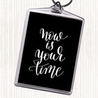 Black White Now Is Your Time Quote Bag Tag Keychain Keyring