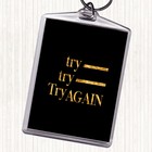 Black Gold Try Try Again Quote Bag Tag Keychain Keyring