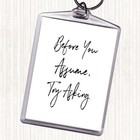 White Black Try Asking Quote Bag Tag Keychain Keyring