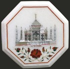 Taj Mahal Replica Inlay Work Side Table Top White Octagon Marble Coffee Table