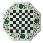 12" white chess marble table top home decor inlay malachite floral