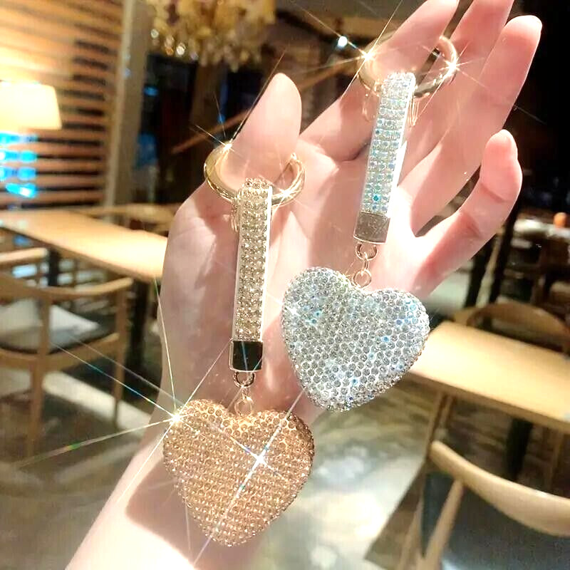 White Shiny Rhinestone Heart Keychain Handbag Pendant Keychain Bag Charm Gift
