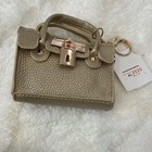 Key Gold Mini Bag Charm Key Chain Padlock Accent Faux Leather Detachable Zipper