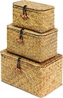 Shelf Baskets with Lid Set of 3 Seagrass Storage Box Wicker Basket Organizer