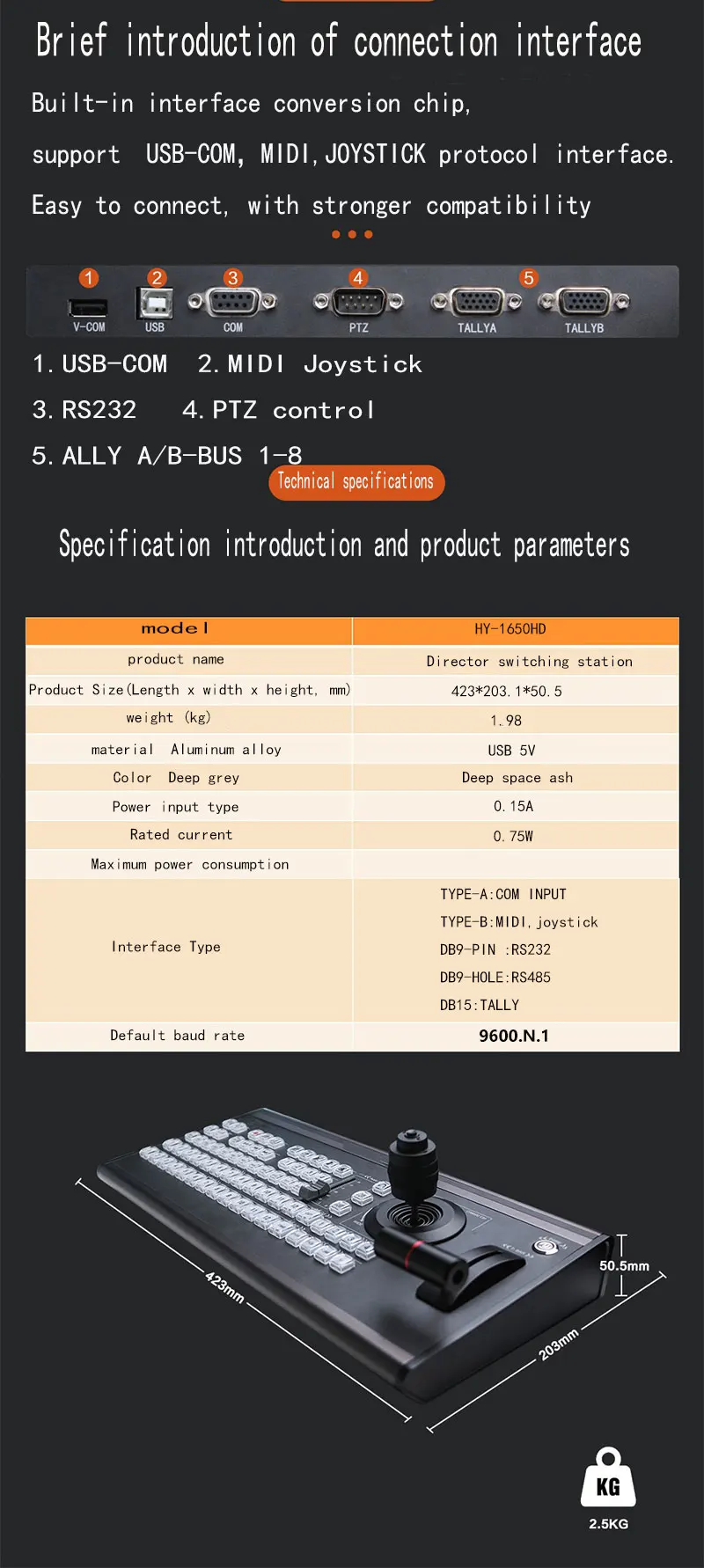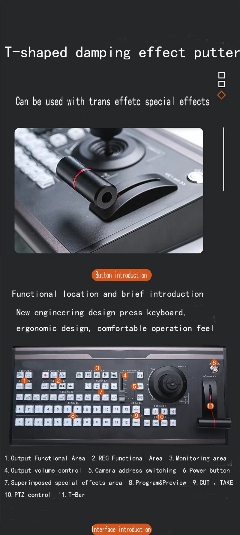 Winwet HY-1650HD Vmix Video Channel Switcher Control Panel Recording Equipment