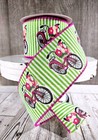 Wired Edge Ribbon. Spring Flowers Bicycle on Stripes. 10 YARD ROLLS. NEW