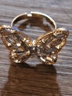 Gold Tone Rhinestone Encrusted Butterfly Ring Adjustable Women's Fashion Jewelry