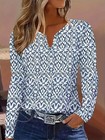 Women's Geometric V‑Neck Long Sleeve Blouse – Loose Knit Casual Elegant Top for