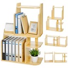 Adjustable Wood Desk Shelf Organizer Tabletop Bookshelf Corner Display Rack