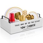 Paper Plate Dispenser Paper Plate Holder For Kitchen Counter Wood Silverware Ute