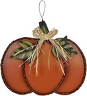 Rustic Pumpkin Shaped Wood Hanging Welcome Sign Autumn Striped Painted Decor