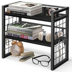 2 Tier Adjustable Desk Shelf Organizer Wooden Desktop Bookshelf Storage Black