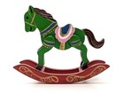 Vintage Hand Painted Wooden Rocking Horse Small: Green & Red / 4.25” x 3.5”