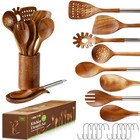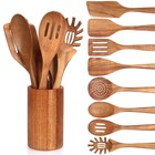 9 Pcs Wooden Spoons for Cooking Utensils with Utensil Holder Teak Wood Kitche...