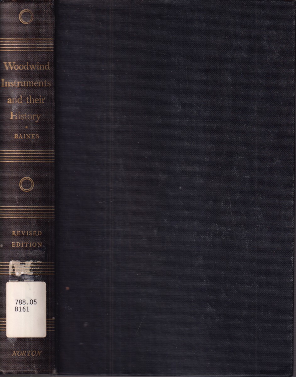 Baines, Anthony Woodwind Instruments and Their History VG- NONE Exlibrary with usual library markings. Some cover wear. Hardcover Revised Edition 1963 W. W. Norton 384 pages.