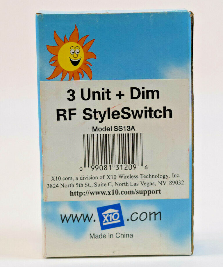 Item: You are bidding on a X-10 Wireless 3 Unit + Dim RF Style Switch Model SS13A New in Box.