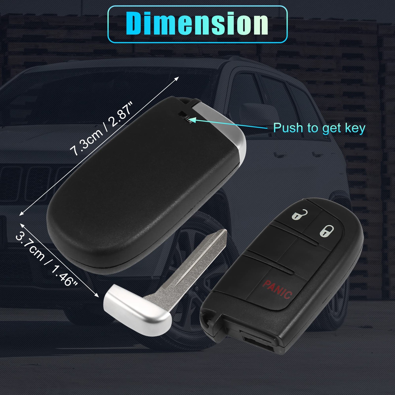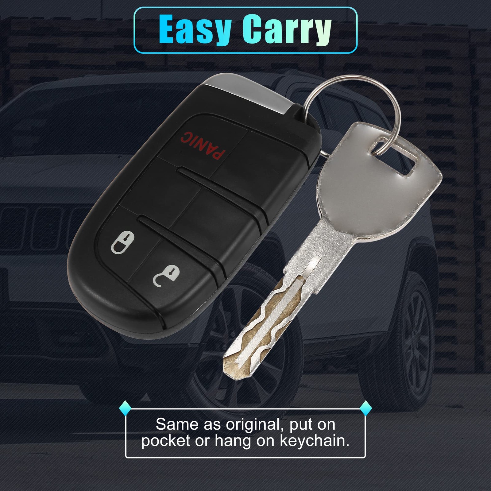 Pros of our keyless remote: With built in chip, sensitive response, 3 buttons car key: remote locking, unlocking, panic. Fast response, wireless remote control. Please confirm the original key has the same button pattern and the vehicle is equipped with the push to start option.