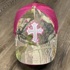 Vintage Y2K Realtree Camo Hat Pink Brown Mesh Trucker Cap Cross Silver Bedazzle