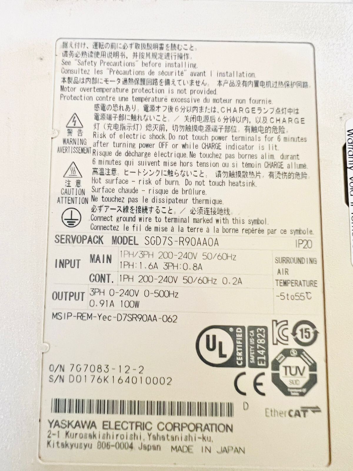 YASKAWA SGD7S-R90AA0A SERVO DRIVE.