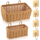 2 Pcs Wall Hanging Baskets for Storage, Woven Hanging Basket with 4 Hooks Boh...